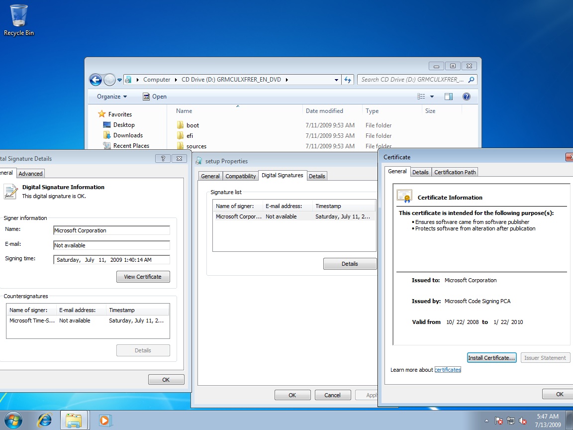 ilovetech Posted July 12, 2009 Share Posted July 12, 2009 setup.exewindows 7 build 7600 setup.exe im a bit sceptic about this tbh the digital signature confirms the authenticity of the build. thanks for the info! Link to comment Share on other sites More sharing options...