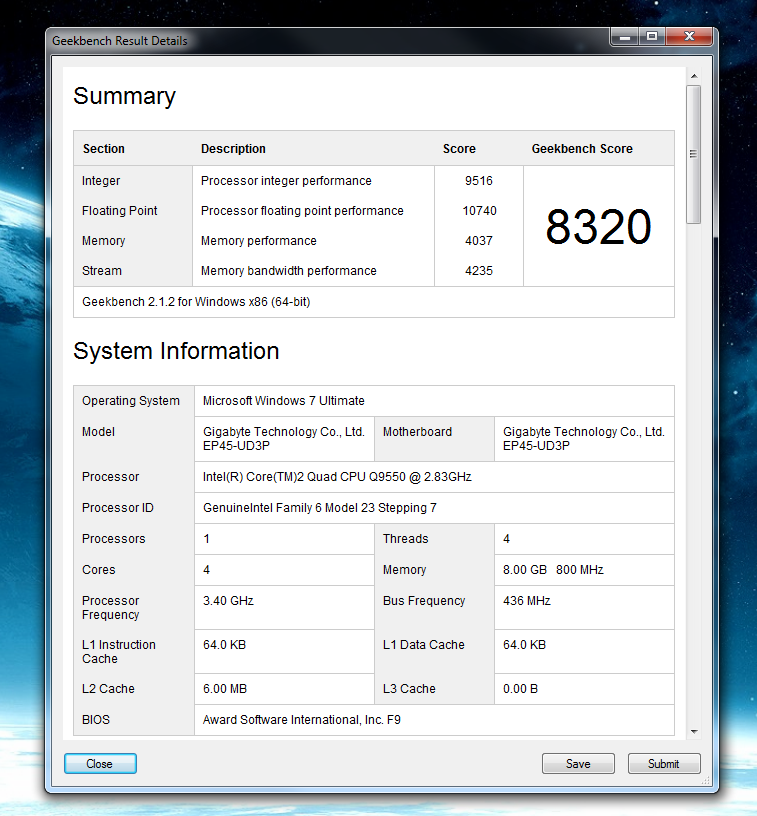Comic Book Guy Posted July 30, 2009 Share Posted July 30, 2009 I posted this before, these are my results from Geekbench 2.1.2 x64: And, these are my results from Geekbench 2.1.2 x32, as you can see my score dropped: Link to comment Share on other sites More sharing options...