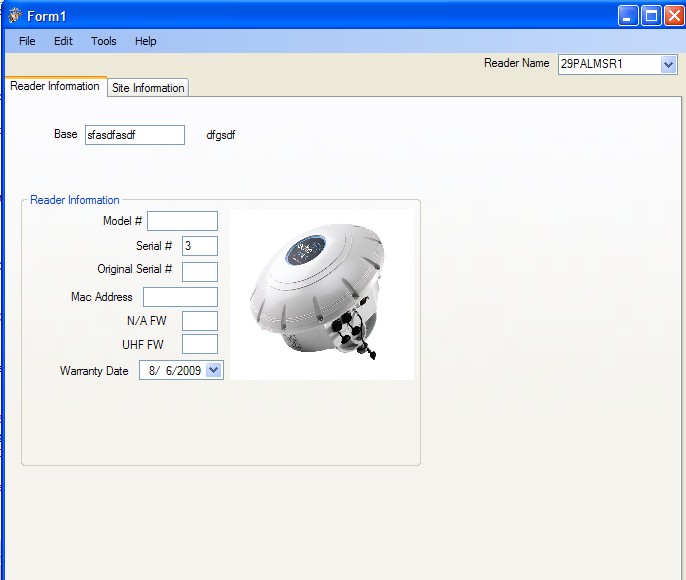 Attached is a shot of the program so far. Basically the goal is to have a Field Service Engineer select the Site he is at from the drop down at the top right, and then it loads data into the 2 tabs on the form for that location. I want it so that whenever data is changed on the form, it is written back to the database, which is located in the applications path (USMCData.sdf)