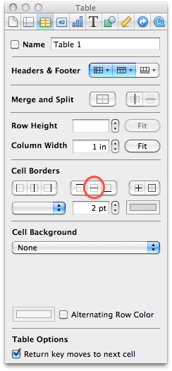 Elliott Posted September 23, 2009 Share Posted September 23, 2009 It's right in the Inspector panel, under the "Table" tab. Just select all the rows you want the bottom border on, click the button I circled, and do all the styling in the tools right below the button. Every new row you create after that should have the same style applied (I tested it out and it works). Link to comment Share on other sites More sharing options...