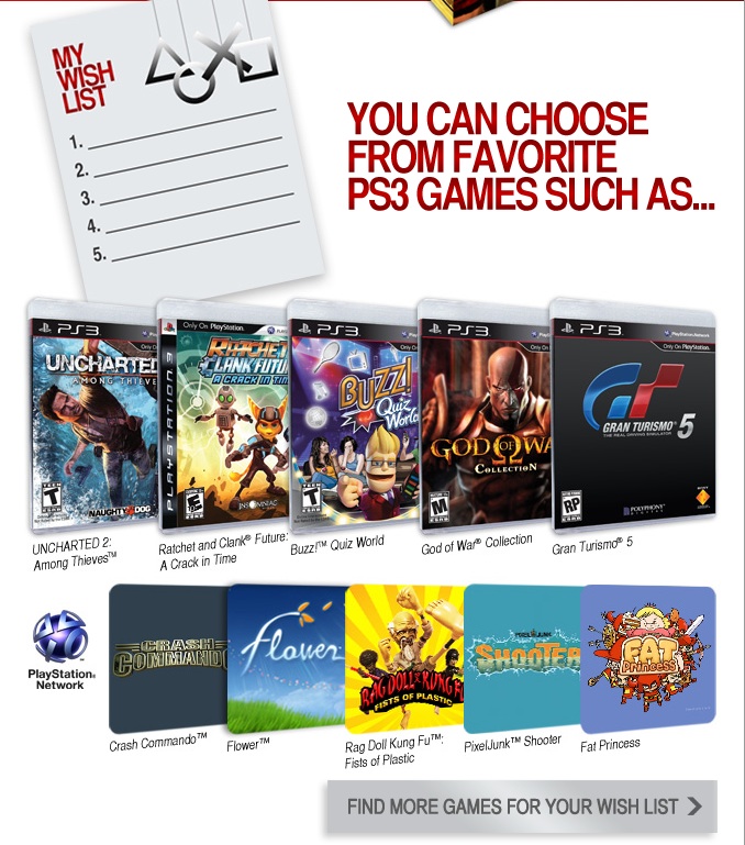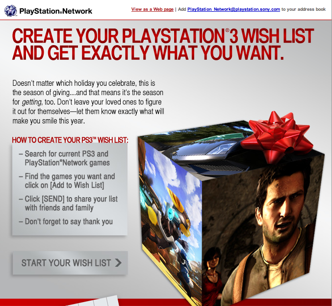 SnowRanger13 Posted December 2, 2009 Share Posted December 2, 2009 So the lasted Playstation Network email I received December 1st was titled "Get what you want this holiday season with your PlayStation wish list". Now thats all fine and dandy why not promote holiday sales? What confuses me is scrolling down shows GT5 as one of the games you can put on your "holiday wish list". Has sony gone bonkers? Or has Santa had the elfs help finish GT5 in time? :p I'll attach the first 2 pages of the email. Link to comment Share on other sites More sharing options...