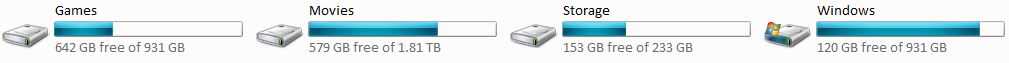 Darrian Posted October 23, 2009 Share Posted October 23, 2009 (edited) How much HD space do you have total and available? If you don't mind me being so nosy. I have 4 TiB total. 1 TiB drive is dedicated to games, of which 642 (of 931) GB is free. Edit: actually I'll just post a picture with the relevant data. "Storage" is an external drive via USB. Edited October 23, 2009 by Darrian Link to comment Share on other sites More sharing options...