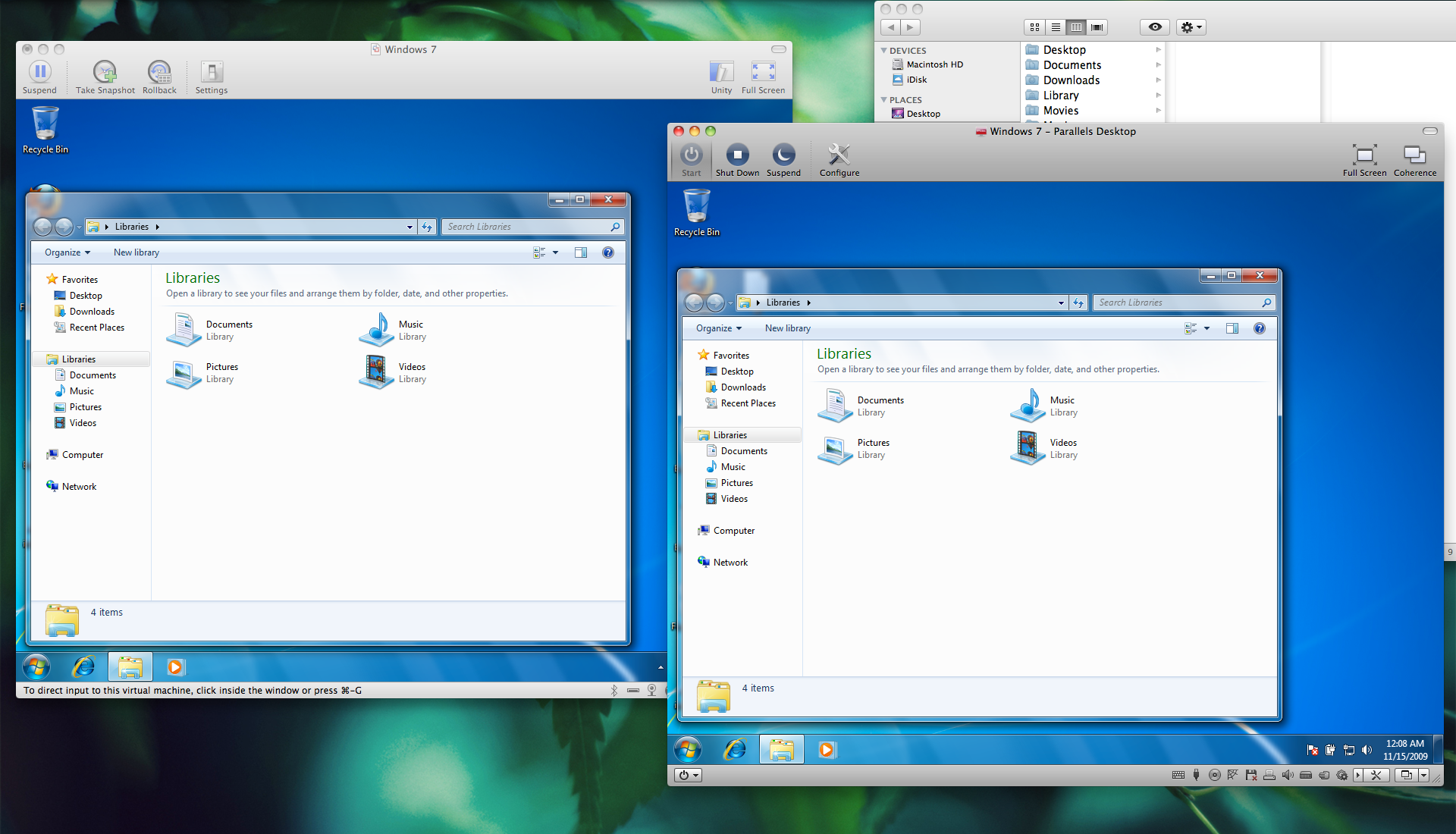 Hot Posted November 14, 2009 Share Posted November 14, 2009 Hi guys, I'm testing out Windows 7 on VMware 3.0 and Parallels 5.0, and it would appear that not only is VMware significantly slower, but it also fails to produce a sharp image. I'm attaching a screenshot of the two virtual machines side by side and the difference should be pretty clear. Both are running at exactly 1024x768 resolution. The machine is a new MacBook Pro with GeForce 9400M and GeForce 9600M GT video cards. Any suggestions? Link to comment Share on other sites More sharing options...