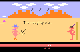 DirtyLarry Veteran Posted November 30, 2009 Veteran Share Posted November 30, 2009 Besides ET, which I actually agree is definitely the worse game ever, there is another Atari classic that someone I knew actually owned so I had the displeasure of playing it. Custer's Revenge It was an "Adult" game for the Atari. I am not even kidding, the object of the game was to make it across the screen to rape a Native American women who was tied to a pole. In the game, the player controls the character of General George Armstrong Custer, depicted as a man wearing nothing but a cavalry hat, boots, and a bandana, sporting a visible erection. Custer has to overcome arrow attacks to reach the other side of the screen. His goal is to have intercourse with a naked, large-breasted Native American woman, named "Revenge." The Award Winning Cover Design Ironically, I also found this information on the Wikipedia site... The focused media attention caused the game to sell approximately 80,000 copies Link to comment Share on other sites More sharing options...