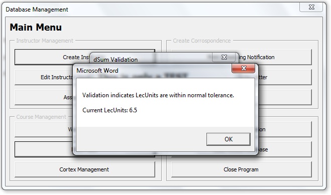 Basically I've got a database where courses are assigned to specific instructors. An instructor can not be assigned more than 18 lec units in a given period of time. In order to tally these lec units, I'm using the dsum function.