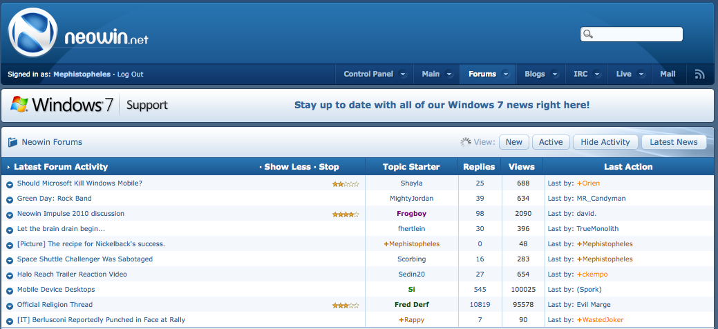 Rappy Veteran Posted December 13, 2009 Veteran Share Posted December 13, 2009 It's a recent change. It wasn't like that a while back. It's kind of annoying and defeats the purpose of LFA for the majority of members coming to a technology / Rappy's media land site. :rofl: last thing you want to see is my name up there a thousand times :p Link to comment Share on other sites More sharing options...