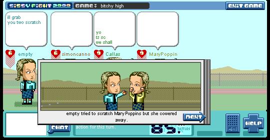 empty Posted September 3, 2003 Share Posted September 3, 2003 (edited) i played this game like 2 years ago but i just remembered it, available at http://www.sissyfight.com/ its a game where you play a schoolgirl (whoa there boys!) and your mission is to humiliate and scratch your way to victory! the game is sheer awesome playfulness and i heartily recommend it to everyone except radish les screenshotes! Edited September 3, 2003 by empty Link to comment Share on other sites More sharing options...