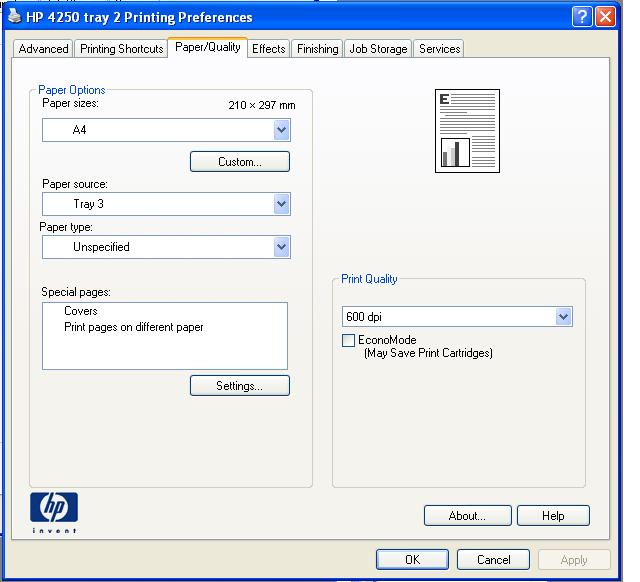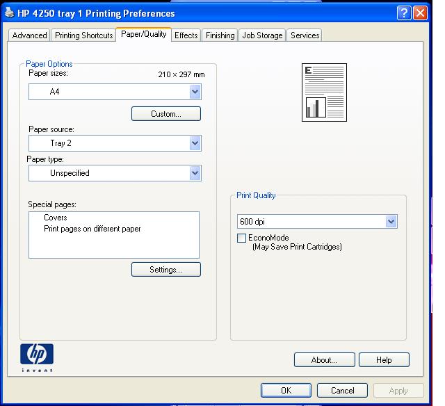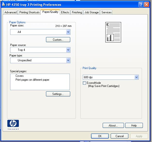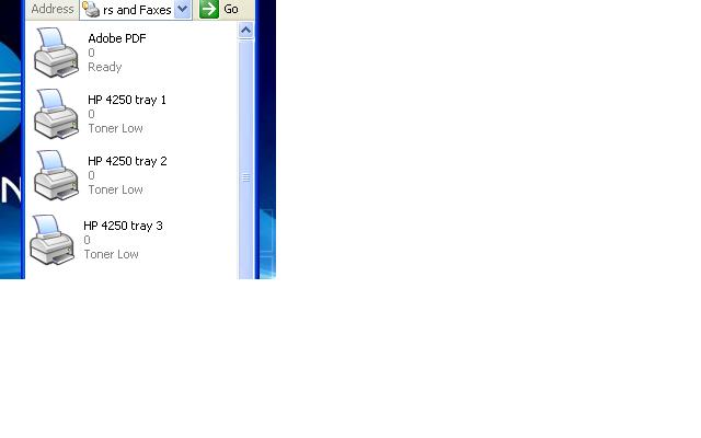 thnx ! It prints now. It only ignores the tray selection in the printer drivers. It prints to the bypass tray. The printers print fine on the correct page when printing a windows testpage. Any thoughs ?