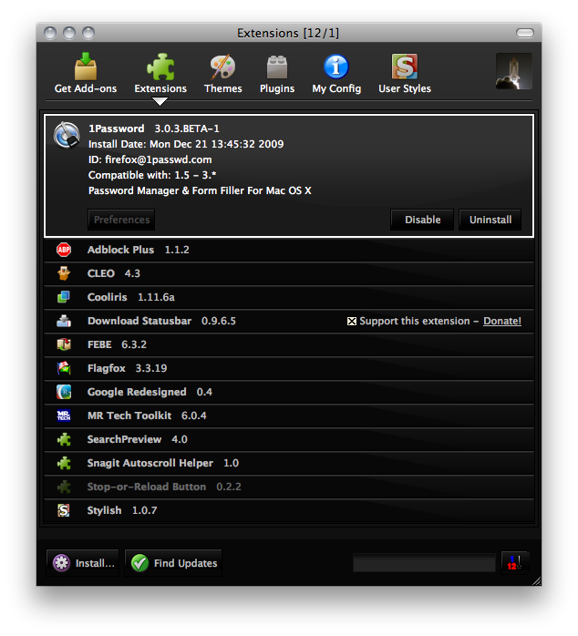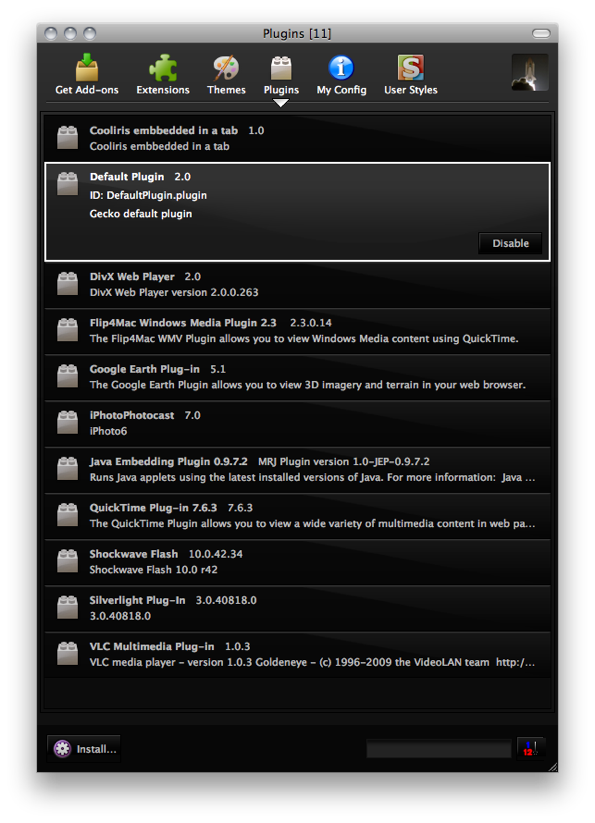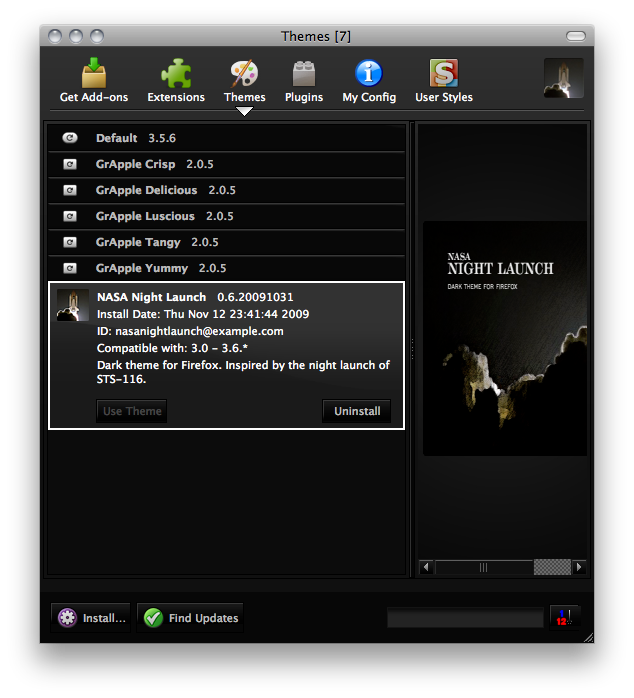 Phantom Helix Posted January 7, 2010 Author Share Posted January 7, 2010 I'm really sorry to thread jack--but what are you using to skin Firefox? I really love what you had shown from your screenshots so I'm just curious to know how to replicate it. /end thread jack ;) NASA Nightlaunch skin lol it was highlighted in the themes window in my first post https://addons.mozilla.org/en-US/firefox/addon/4908 Link to comment Share on other sites More sharing options...