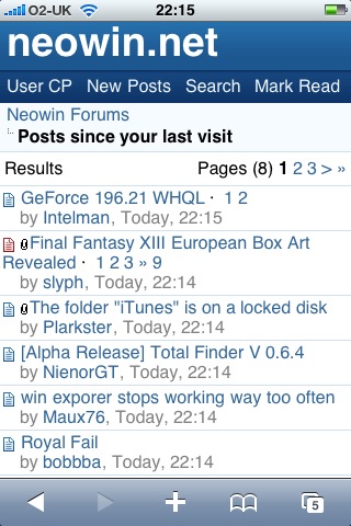 shockz Posted January 20, 2010 Share Posted January 20, 2010 I love the News section style on Neowin mobile. (Y) ......but I prefer the older forum layout. With the smaller font, as it fits more on the screen. Smaller fonts make touch screen devices harder to use. With that theme, selecting a page number on a thread is a battle with an iPhone. Link to comment Share on other sites More sharing options...
