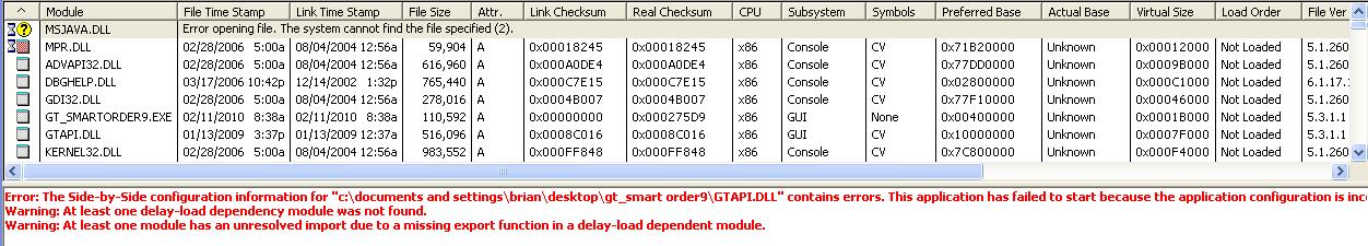 0 NotSoSmartGuy Posted February 11, 2010 Author Share Posted February 11, 2010 So I went and downloaded dependency walker to see if I have all the DLLs. As you can see I'm missing MSJAVA.dll. I downloaded this file, but I don't know where to put it. ! Link to comment Share on other sites More sharing options...