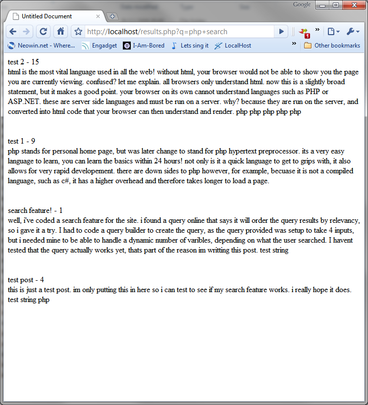That hard part for me was doing a search, more specifcally ordering the results by relevance.