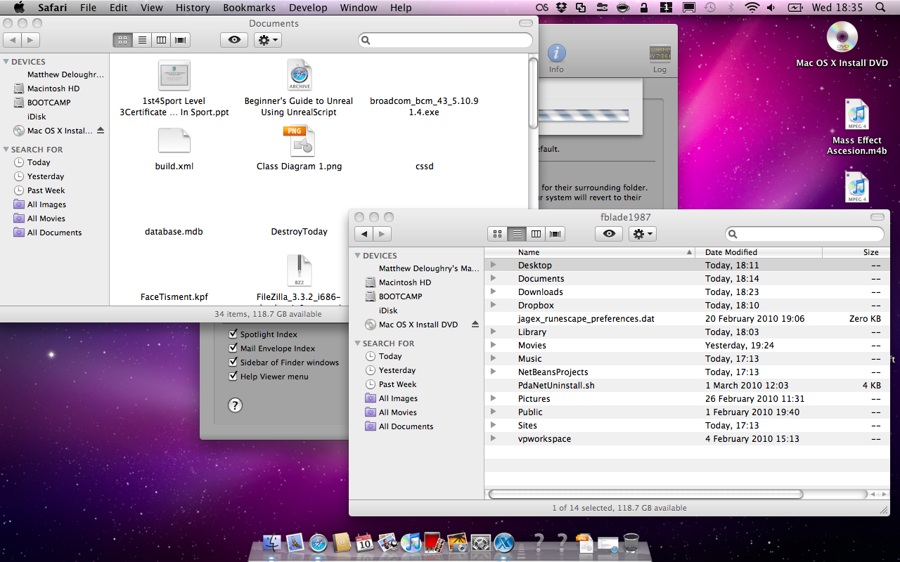 TrickierStinky Posted March 10, 2010 Author Share Posted March 10, 2010 Those messages are nothing to worry about - it's just a warning, not an error. There are a list of 'safe' warning messages here. If you use Time Machine, have you tried to roll back to yesterday? Also, have you simply tried to reboot? I usually get a 'No Entry' overlay on new stacks until I restart OS X. oh thats good thanks, I sadly don't use Time Machine I really should.. think I will after this. A reboot dose not work! Also deleted the plist for dock, finder, and desktop to see if that would make a difference, this made no difference however I am now unable to select any places! also I've noticed when selecting images say click view full size image on google images, it downloads it! Also the previews on images doesn't seem to work any more and here a screen shot of the problems Link to comment Share on other sites More sharing options...