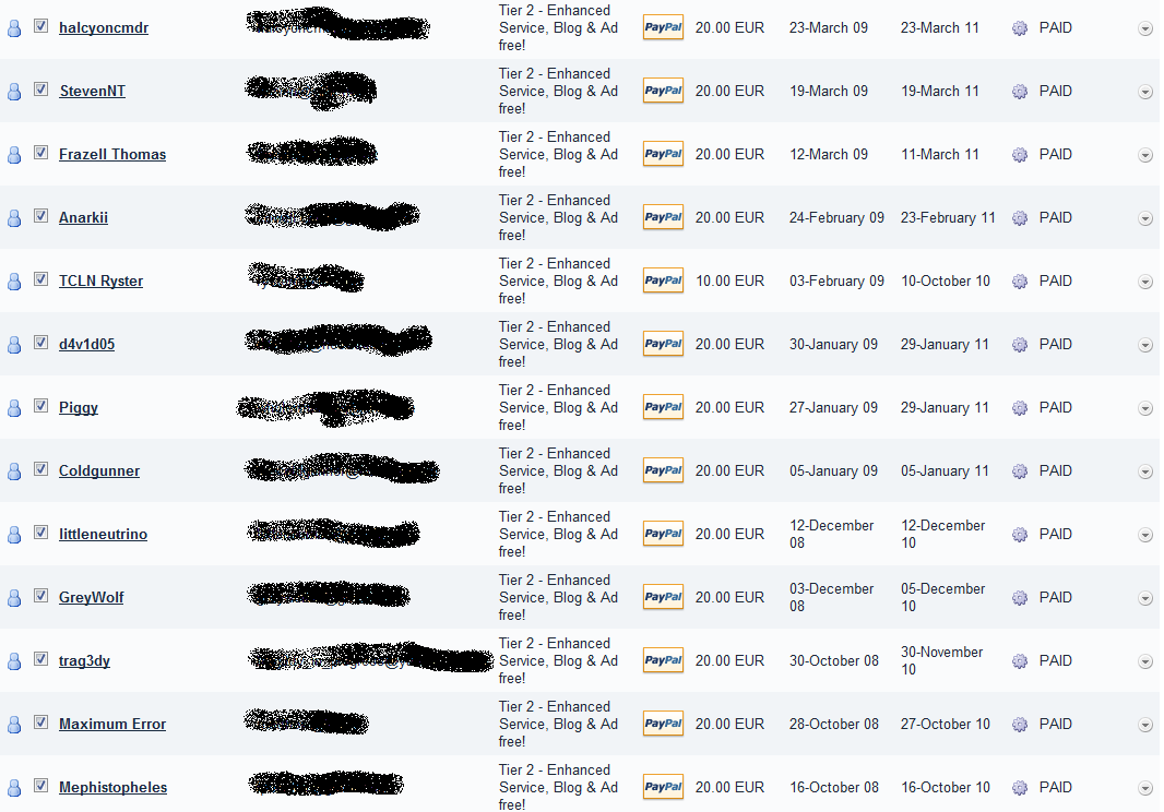 Steven P. Administrators Posted March 28, 2010 Author Administrators Share Posted March 28, 2010 Apologies TCLN Ryster yours has been fixed. Same here, I paid 20 euro's Apr. 8, 2009. 12 July '08 it says. Heres a history, you can see the last transaction for whatever reason was given two years instead of one.. So you haven't lost out at all really. Link to comment Share on other sites More sharing options...