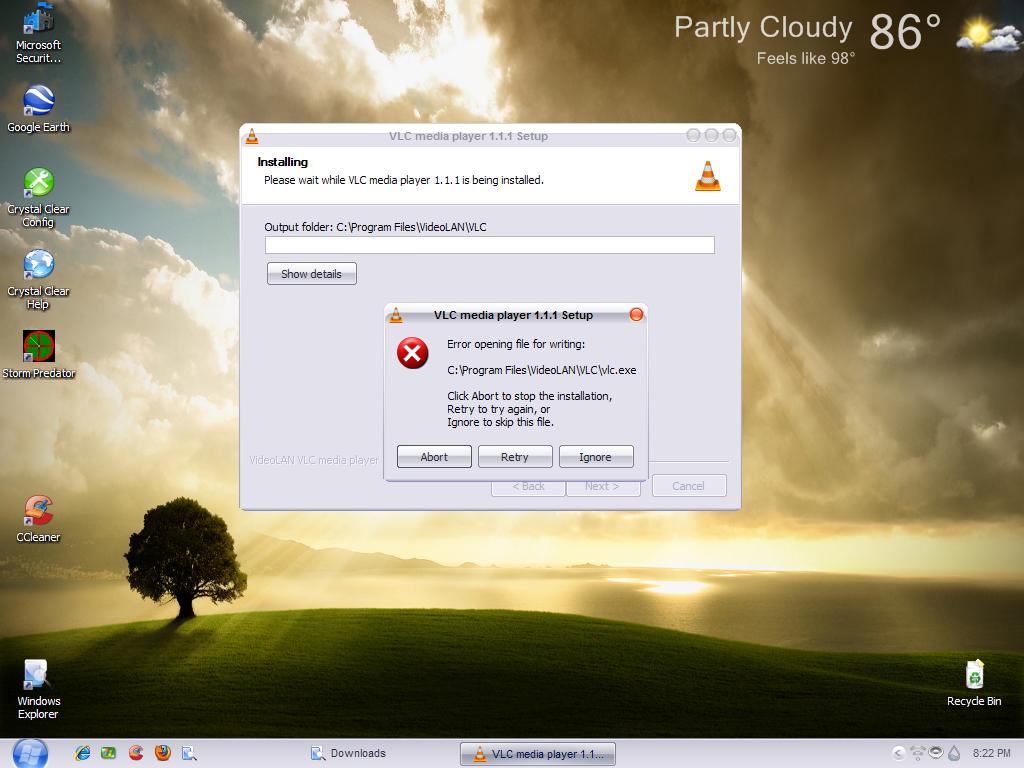 I keep getting this error when trying to install the latest version of VLC. Anyone else have this problem?