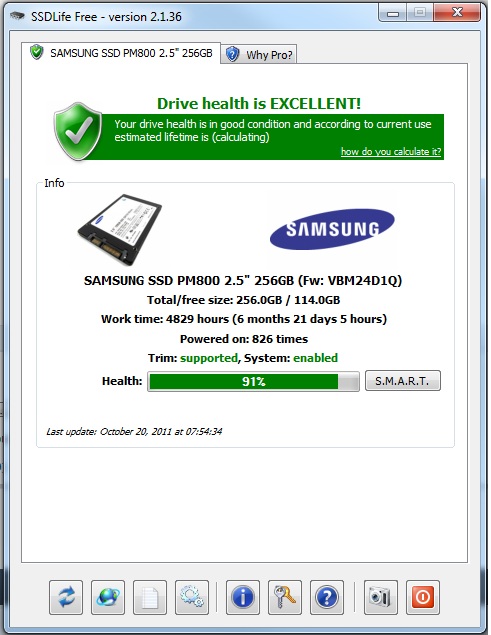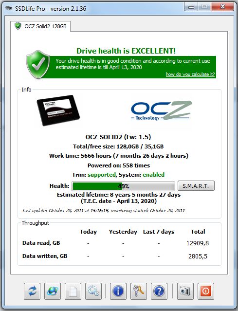 coth Posted October 20, 2011 Share Posted October 20, 2011 mine been 70% out of box with 0 hours and it's still 70% (obviously this app do not support this samsung ssd) http://online.hddlif...fa150a940922a98 but those unknown samsung smart parameters EB March 2011 (194 hours) : 7 September 2011 (5254 hours): 9 EC March 2011 (194 hours) : 2 September 2011 (5254 hours): 55 ED March 2011 (194 hours) : 15 September 2011 (5254 hours): 207 EE March 2011 (194 hours) : 1196 September 2011 (5254 hours): 1196 Link to comment Share on other sites More sharing options...