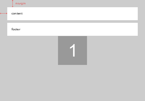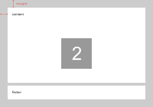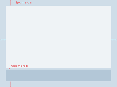 I want my content area (lightest blue) to stretch all the way to my footer (dark blue), which must always be at the bottom, and i want the complete thing (content+footer) to have a 12px margin from the edges of the screen.