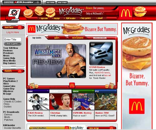 Malechai Veteran Posted September 10, 2003 Veteran Share Posted September 10, 2003 they often have different sponsors who do that.. right now it happens to be mcdonalds. i've seen Hulk stuff when hulk was coming out, etc. pretty good idea rather than using banner ads if you ask me, because tons of people just block those. Link to comment Share on other sites More sharing options...