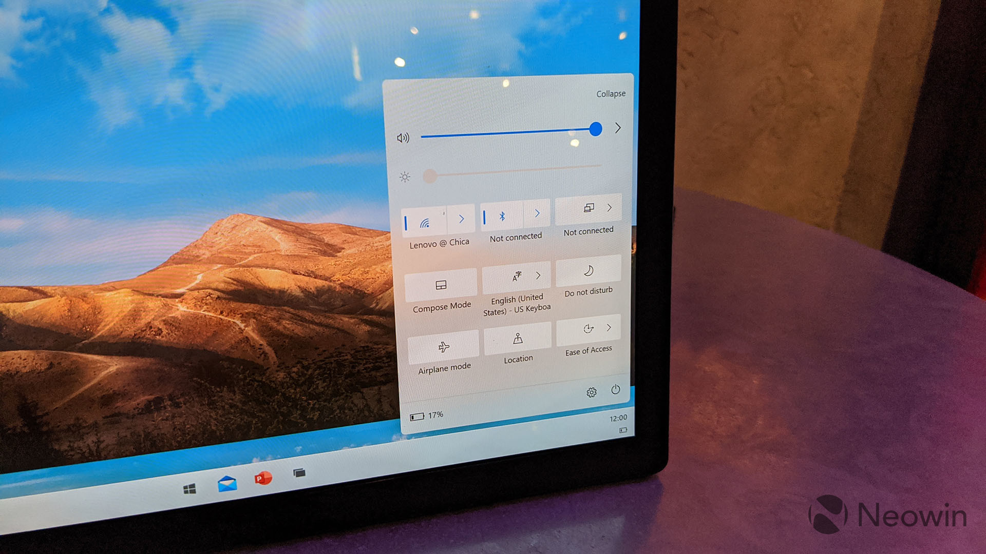 Like how the Start Menu can be activated by swiping up, the Action Center can be activated by swiping in from the bottom-right corner. As you'd expect from Microsoft's history of touch-centric UIs, swipe gestures are a big part of Windows 10X, although for the most part, they shouldn't be unfamiliar swipe gestures.
