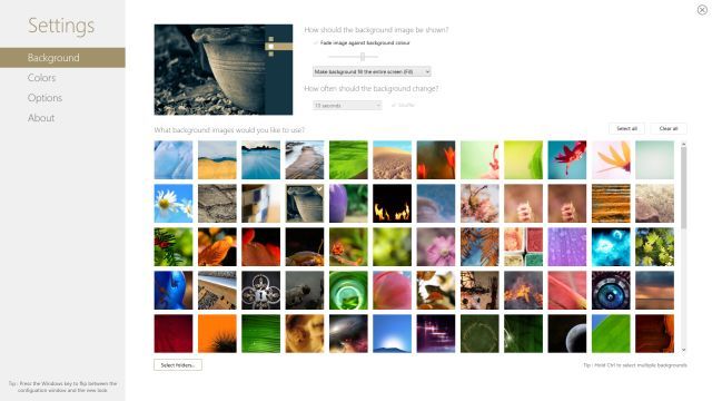 Decor8 is our first program that starts to address the limitations of the Windows 8 Start screen. The default Start screen doesn't allow you to use your own wallpapers and such. Decor8 lets you use your own backgrounds for the Start screen.