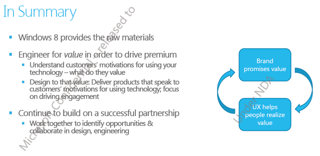 The leaked document finishes with the suggestion that Microsoft is working on hard drive encryption for Windows 8. The software giant currently handles encryption by using its Bitlocker technologies. Earlier this year Microsoft posted a job opportunity where the company stated it was "looking for a great PM to define the “BitLocker Experience” in the next version of Windows."